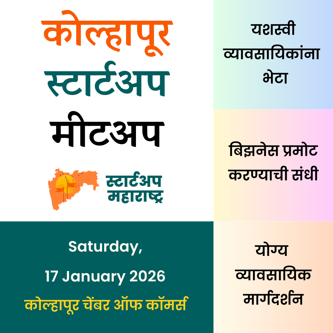 👉 नोंदणीसाठी स्टार्टअप महाराष्ट्र च्या वेबसाइटवर ‘कोल्हापूर मीटअप इव्हेंट्स’ या पेज वर उपलब्ध असलेला फॉर्म भरावा किंवा आमच्या ग्राहक प्रतिनिधी सोबत बोलून नोंदणी करावी
